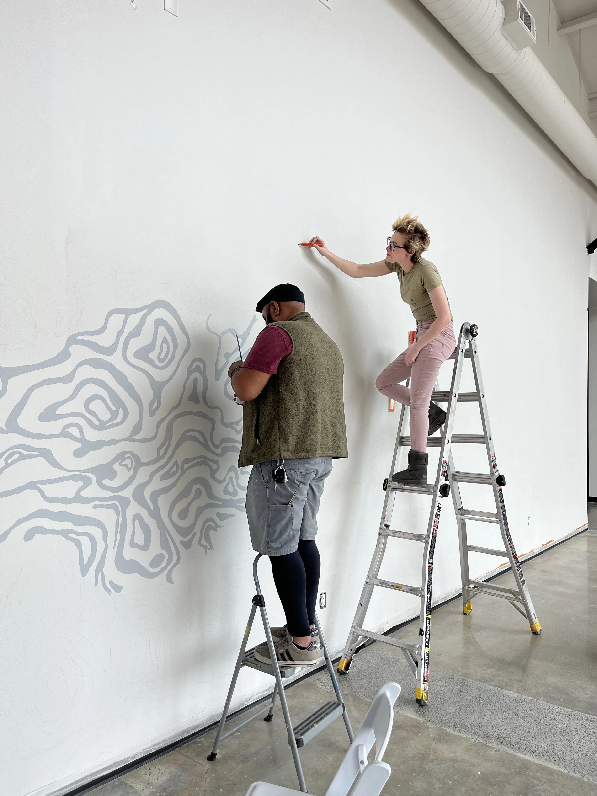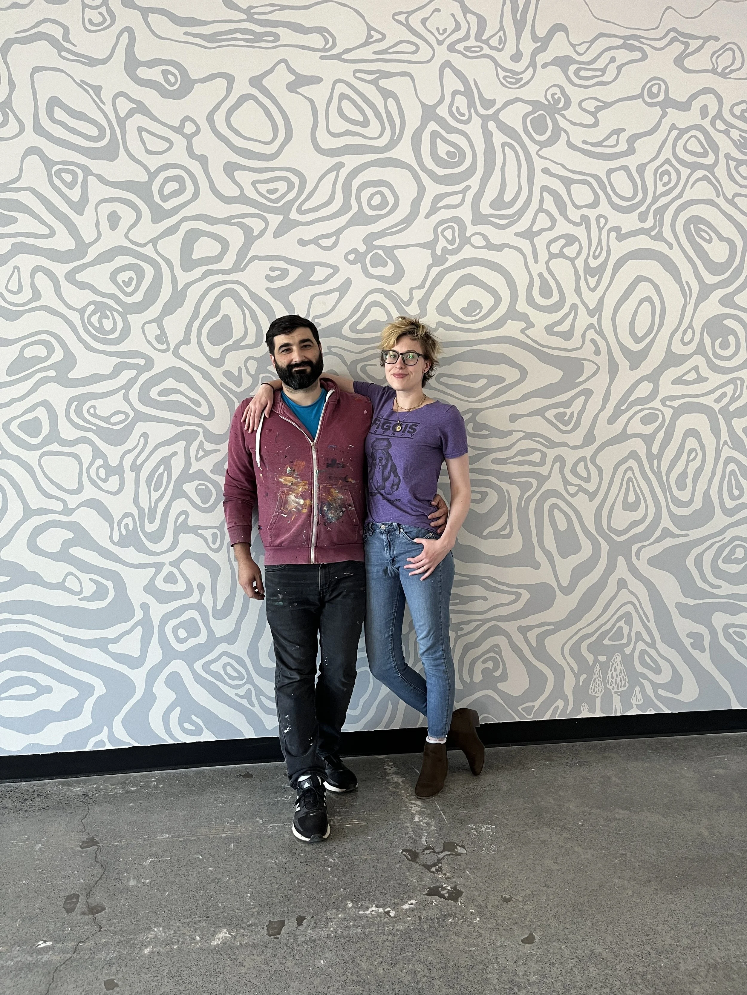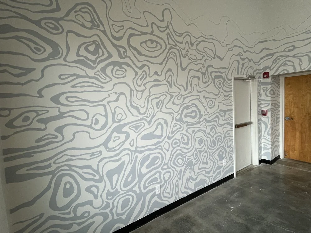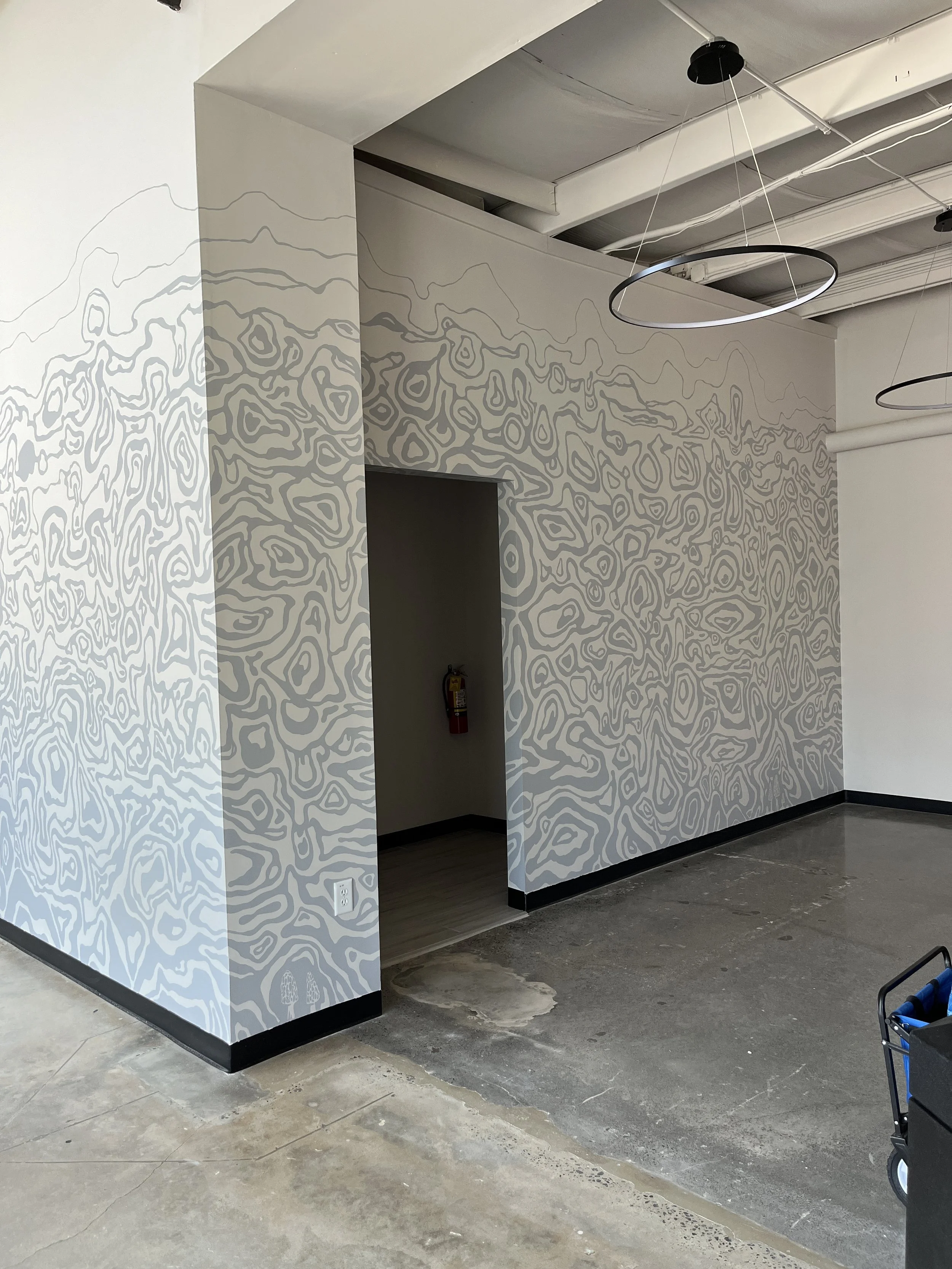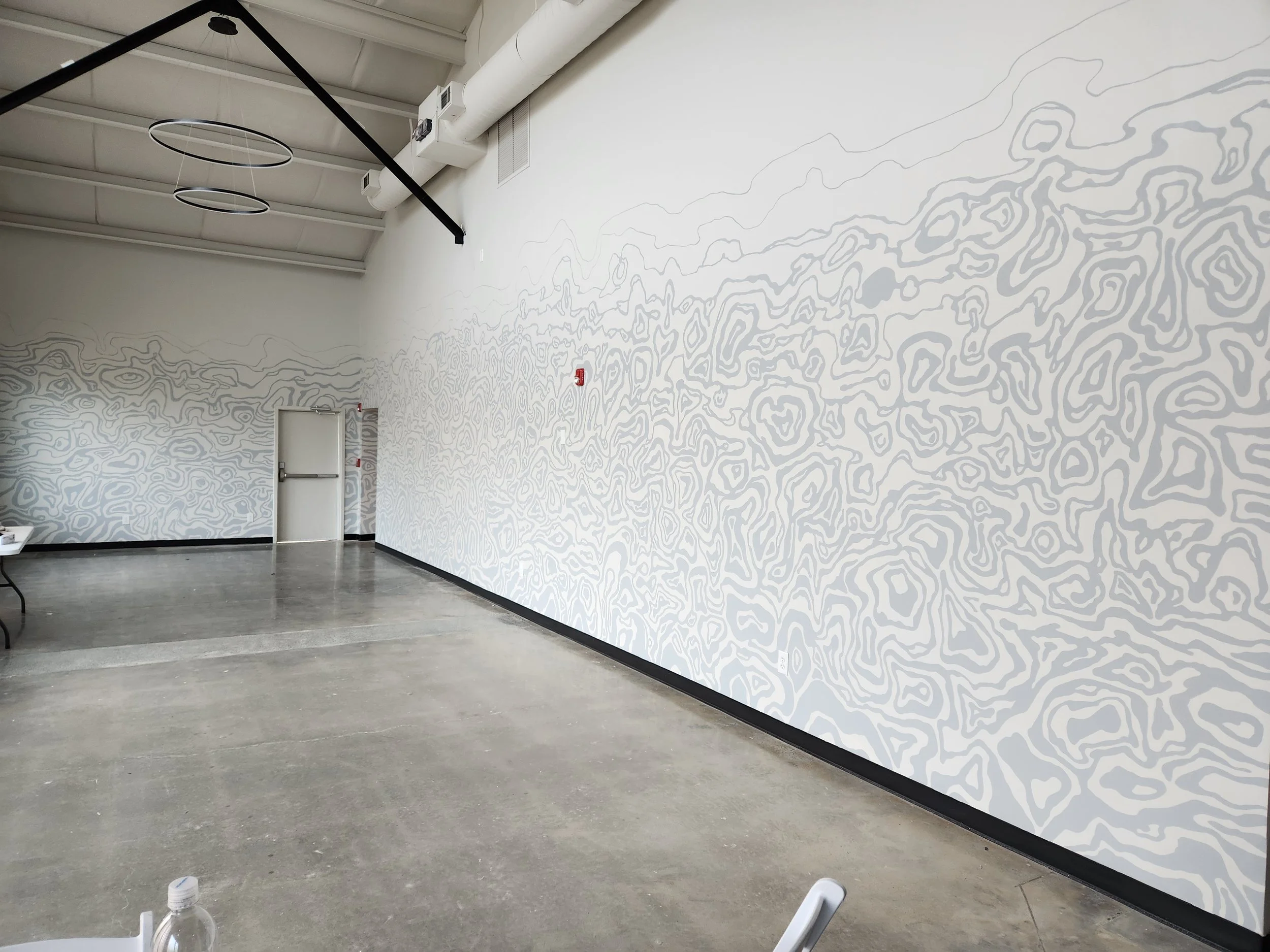 A mural commissioned in the event space of “Talk of the Town Catering”. We mimicked a Damascus steel pattern to reference the tools chefs work with, and to add an ambiance without being overpowering to any particular event.