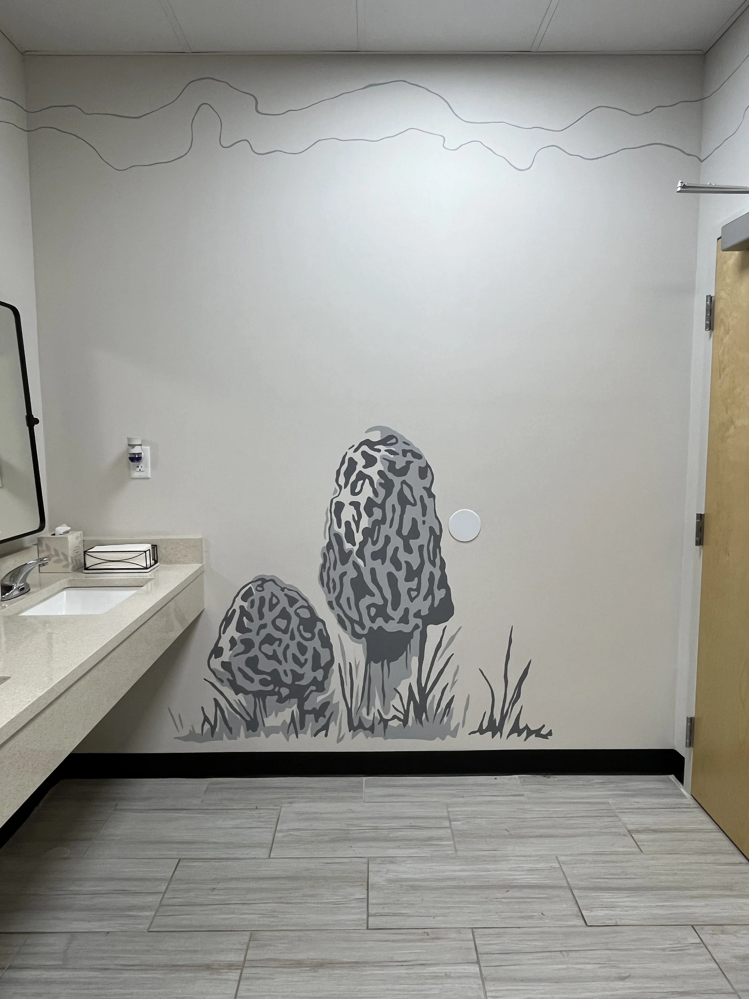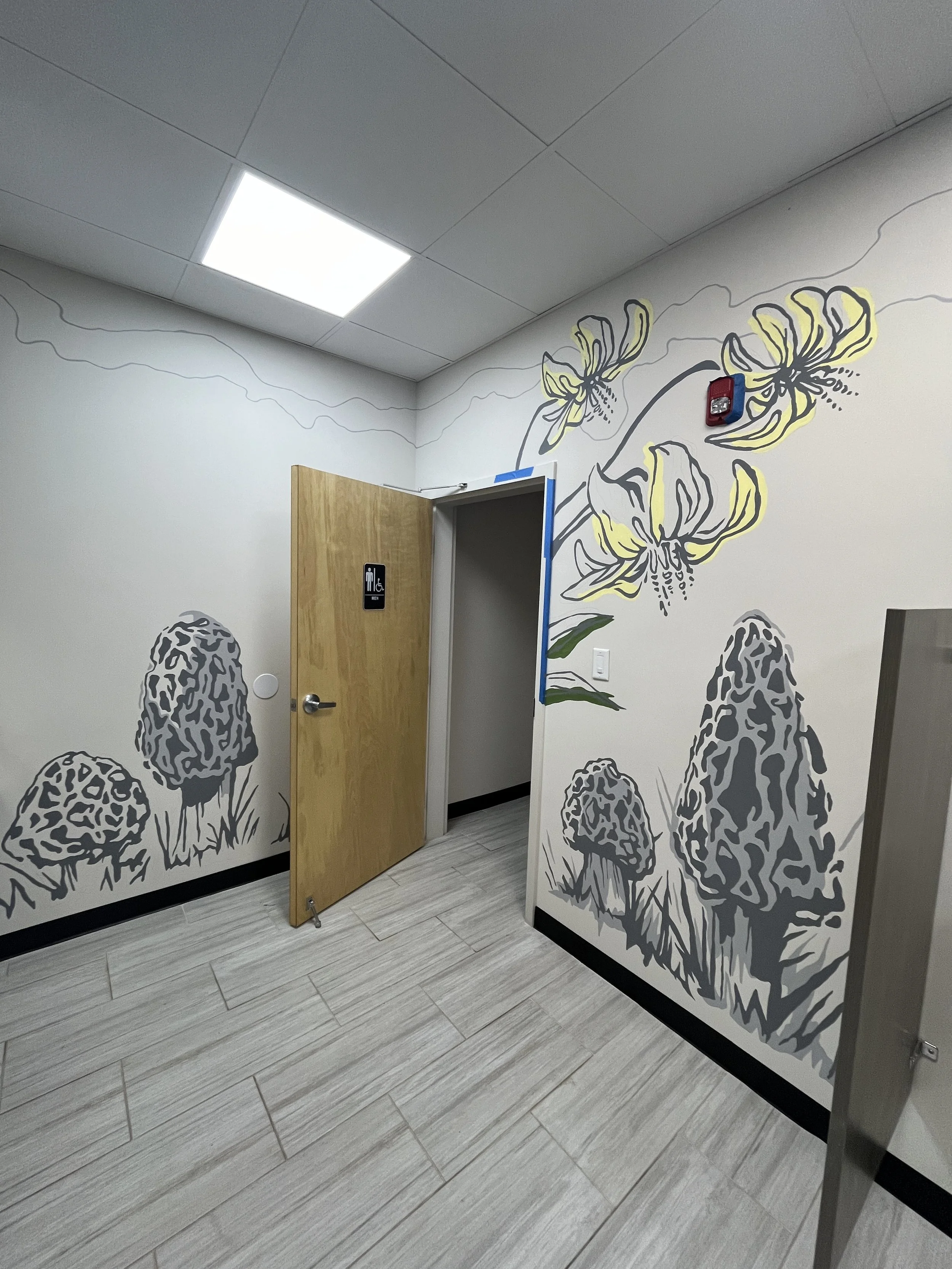 A mural commissioned in the Mens Room of “Talk of the Town Catering” event space